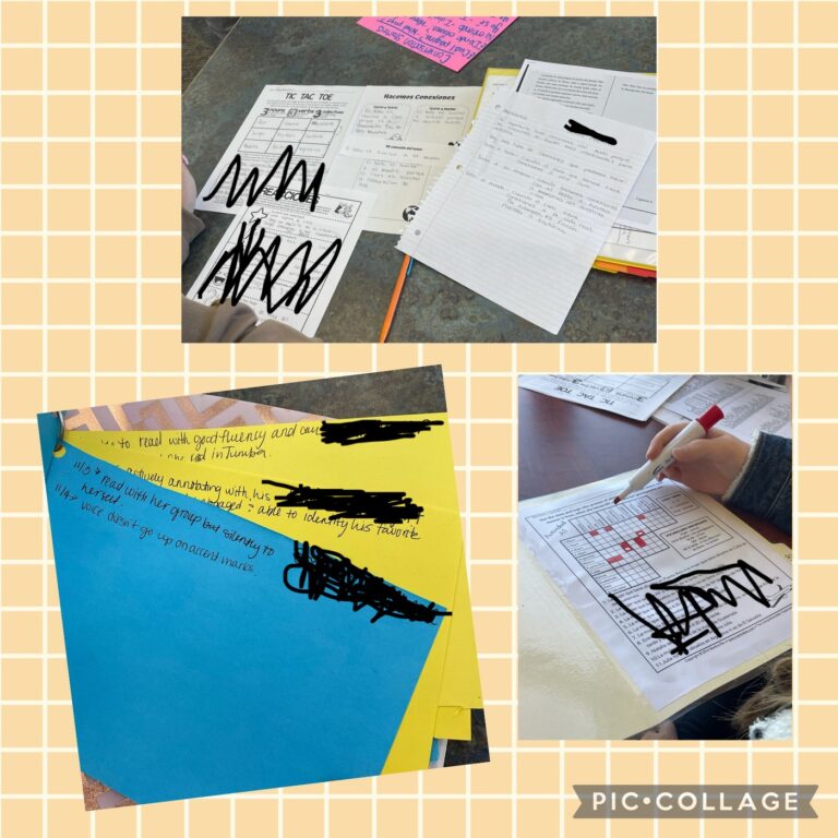 Let’s actually dive into the data part. I think this is why I was motivated to meeting with Amy in the first place because my team needed to get a plan for collecting data in place. I asked Amy if she knew of the best way and it boiled down to the fact that there isn’t one right way to collect it, there are multiple ways. After deliberation, I settled on using a method that she saw in one of our middle school classrooms. Using a half sheets of paper, binder rings, and a hole punch, I created a sheet for each of my Spanish 2 students where I could keep notes and track some of their goals and milestones throughout the book. It was simple and one of the easiest ways that I could get the data down. Originally I wanted to use something on the computer but I found that it wasn’t working because it made my interactions with students feel disingenuous because I wasn’t completely focused on them.