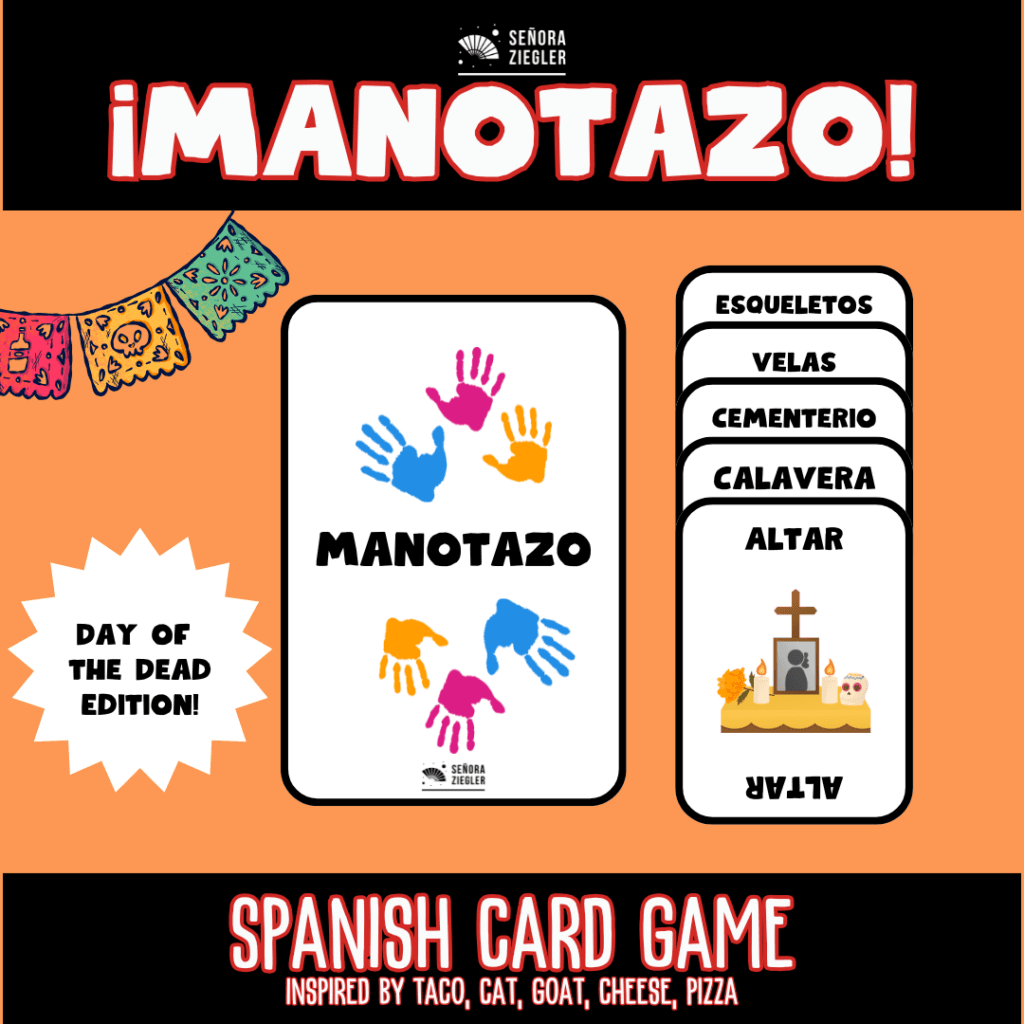 Looking for a lively way to engage your Spanish students while focusing on vocabulary repetition? Look no further than “Manotazo”! Inspired by the popular game “Taco, Cat, Goat, Cheese, Pizza,” this fast-paced card game is perfect for your Fun Friday, but your students will be begging you to play it every day of the week.
